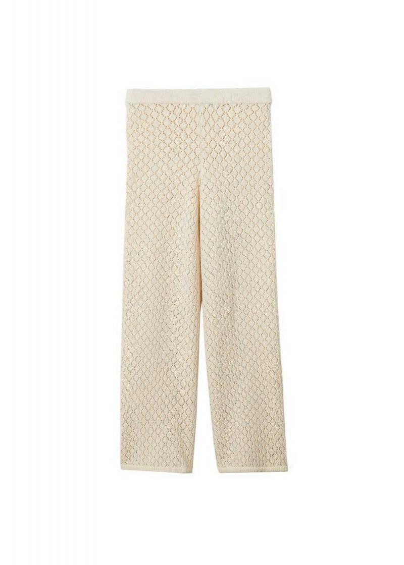 Hosen | Mango Damen Hose Mit Lochmuster Ecru