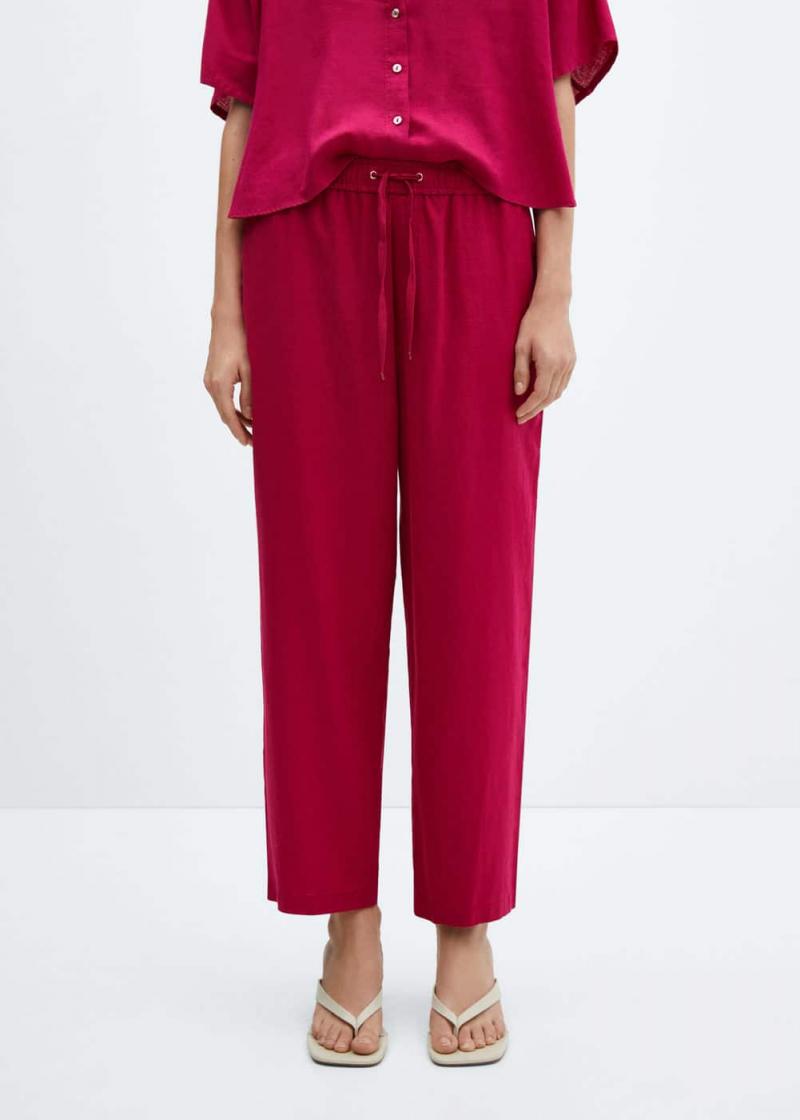 Leinen-Mix Gerades Design Langes Design Hoher Sitz Zwei Seitentaschen Gummibund mit Schleifenverschluss Futter Total Look