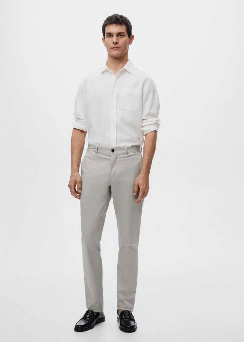 Slim Fit Mischgewebe aus nachhaltiger Baumwolle Twill Chinohose Gürtelschlaufen Reiß- und Knopfverschluss Zwei Seitentaschen Zwei Paspeltaschen hinten Diese Hose ist in Größen mit einer Überlänge von 5 cm erhältlich, damit die ursprüngliche Passform bei jeder Körpergröße erhalten bleibt. Als "Committed" gekennzeichnet Kleidungsstücke sind Produkte, die mit Fasern und/oder nachhaltigen Produktionsverfahren zur Reduzierung der Umweltauswirkungen hergestellt wurden. Ziel von Mango ist es, die Einführung umweltfreundlicherer Praktiken zu unterstützen und somit die Anzahl nachhaltiger Kleidungsstücke in der Kollektion zu erhöhen.