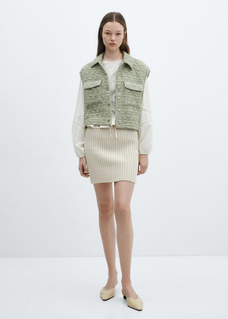 Knittereffekt Gerades Design Gestepptes Design Hemdkragen Druckknopfverschluss an der Vorderseite Ärmellos Zwei geknöpfte Pattentaschen auf Brusthöhe