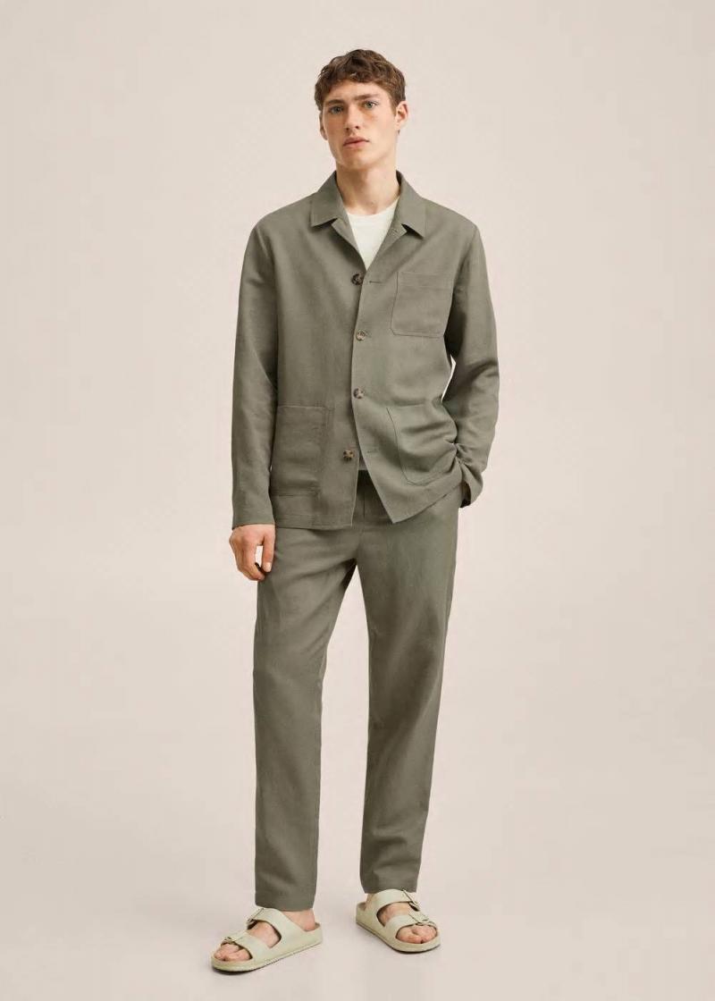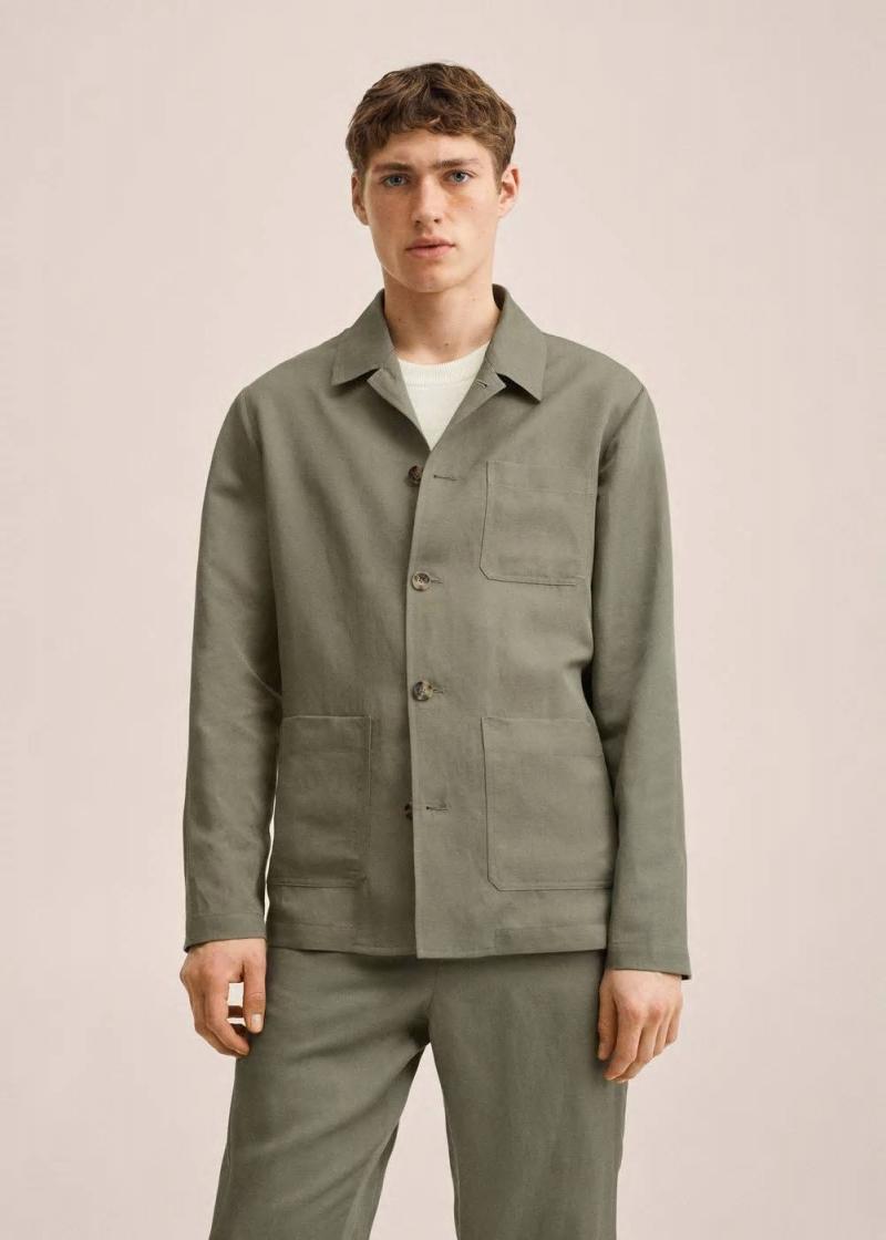 Jacken Und Westen | Mango Herren Leinenjacke Mit Taschen Marron Medio