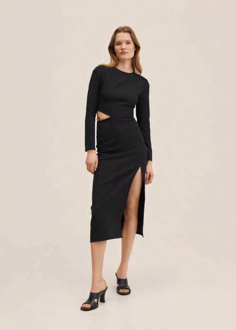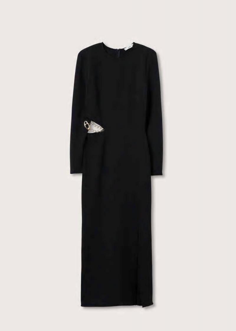 Langes Design Mid-Design Mittelgroß Slim Fit Schmaler Schnitt Rundhalsausschnitt Lange Ärmel Cut-out Metallapplikation Vordersaum mit Schlitz Reißverschluss Party- und Zeremoniemode-Kollektion