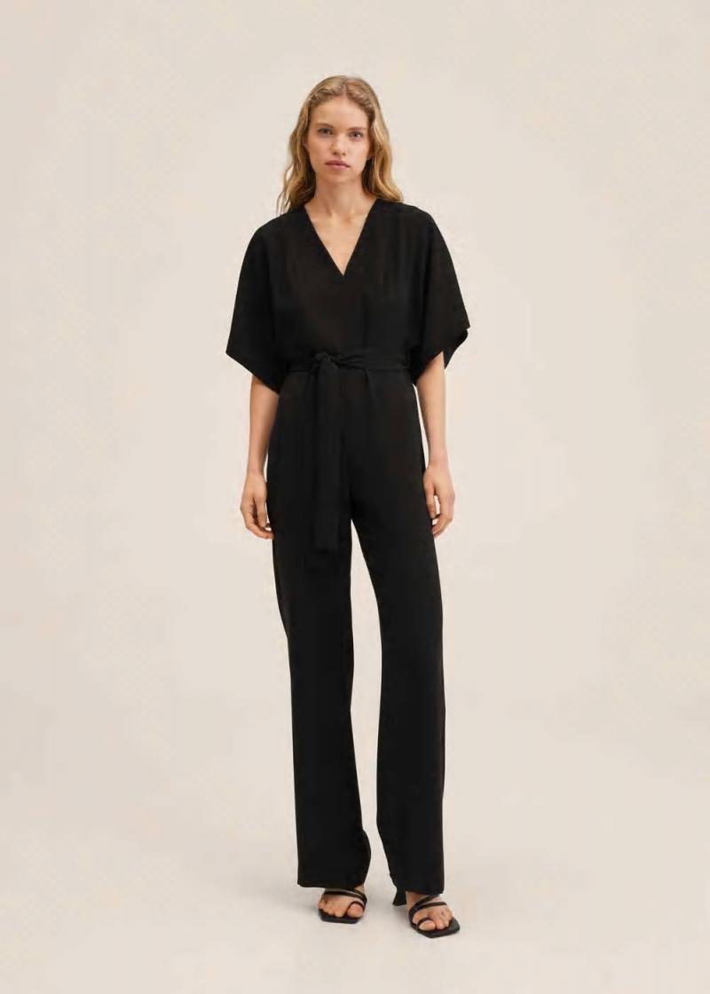 Kleider Und Overalls | Mango Damen Langer Overall Mit Gürtel Schwarz