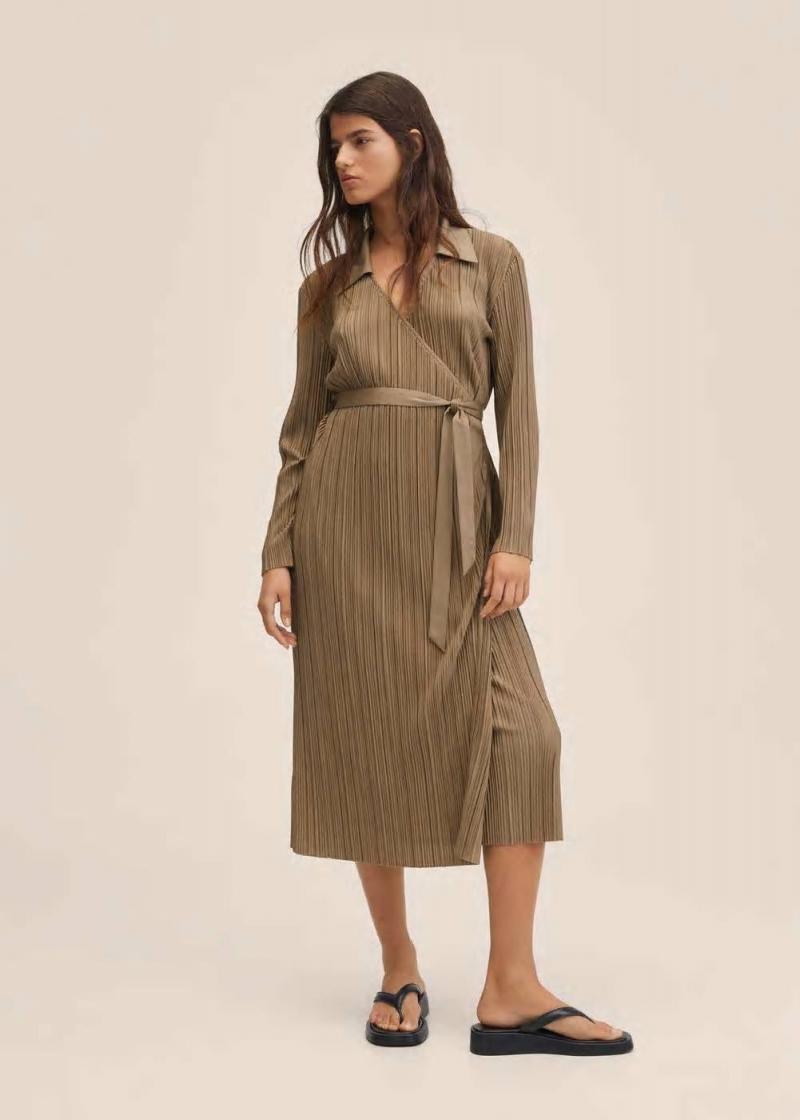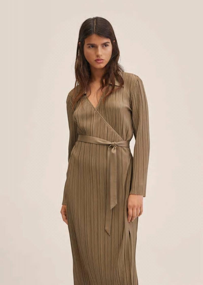 Startseite / Damen Bekleidung / Kleider Und Overalls / Kleider Und Overalls | Mango Damen Plissiertes Wickelleid Schwarz