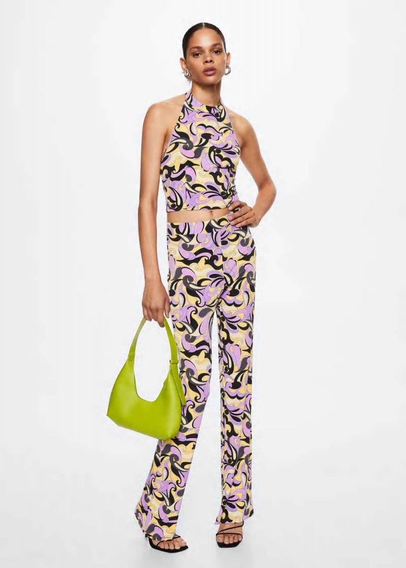 Mischgewebe aus recyceltem Polyester Retro-Muster Tailliertes Design Crop-Design Neckholder Ohne Ärmel Tiefer Rückenausschnitt Rückwärtige Schleife Knopfverschlüsse am Kragen Total Look