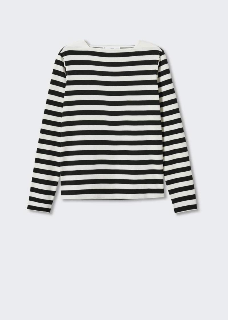 Committed Kollektion 100 % Baumwollgewebe Strick Stretchstoff Streifenmuster Gerader Kragen Lange Ärmel