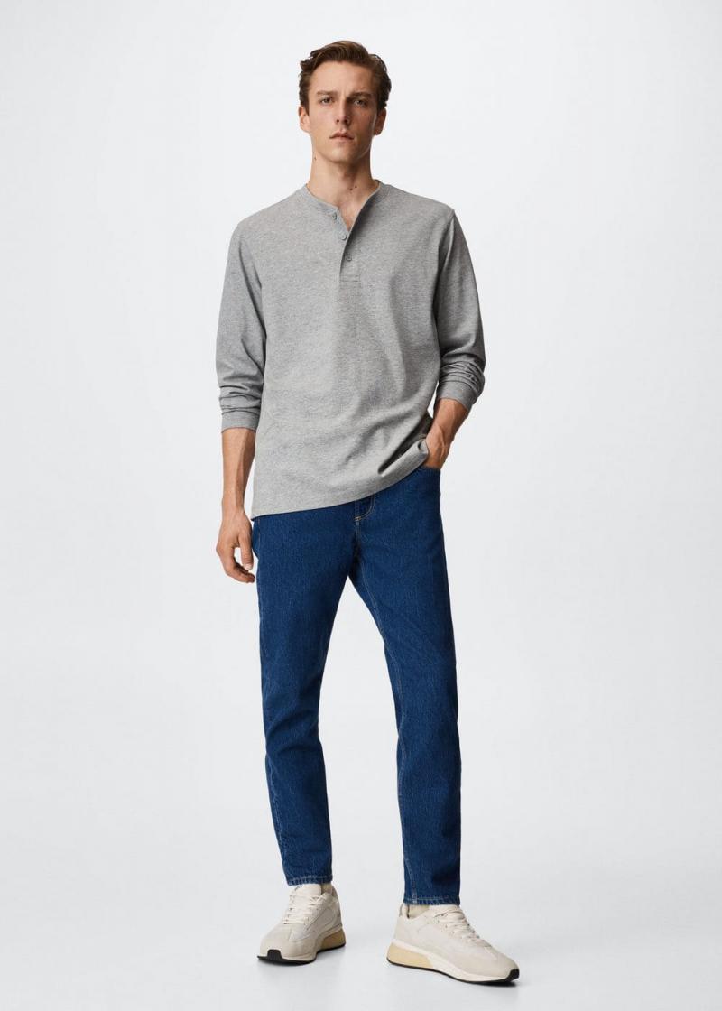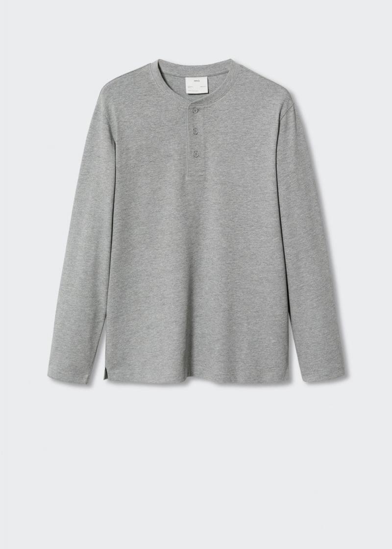 Startseite / Herren Bekleidung / T-Shirts / T-Shirts | Mango Herren Langarmliges-Henley-Shirt Gris Medio Vigore