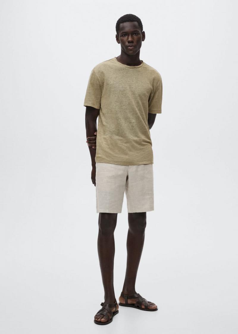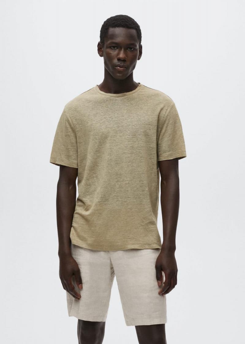 Startseite / Herren Bekleidung / T-Shirts / T-Shirts | Mango Herren T-Shirt-Aus-100–Leinen Beige